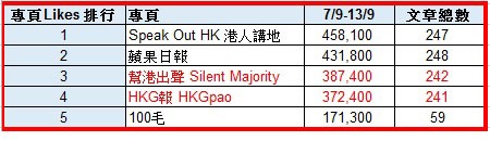 當然就全盤事實來說,爛船還有三分釘。以上形勢只是針對Facebook專頁的分析結果,《蘋果日報》開拓多媒體業務多年,在網站瀏覽量方面仍據有穩固地位,在Facebook上亦擁有213萬訂戶的「老本」,遠多於港人講地的31.1萬、幫港出聲16.8萬及HKG報9.3萬。