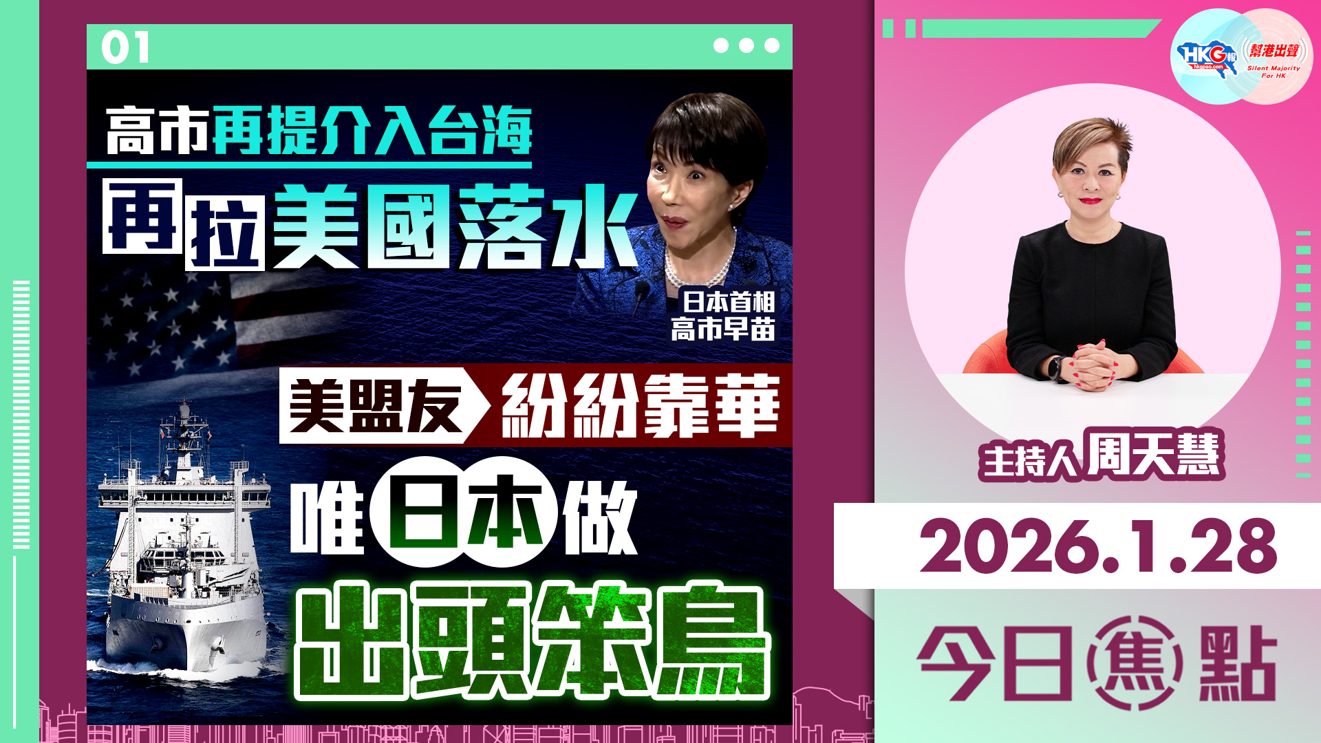 雖然社會回歸平靜,但暗湧仍然存在,幫港出聲與HKG報的媒體使命與責任並未完結。香港與國家休戚與共,由過往的遏止內亂,轉變成今天的應對外患。在《回首黑暴6年 鞏固國安基石》的第二集中,主持人周天慧將闡述「一國」如何助我們、助香港、助國家破局。