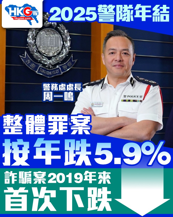 2025警隊年結 整體罪案按年跌5.9% 詐騙案2019年來首次下跌